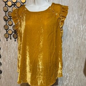 Chic velvet top by LOFT. Rich mustard hue. Perfect for any occasion.