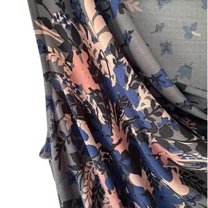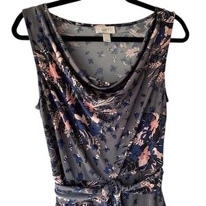 LOFT NWOT FLORAL SWING DRESS COWL NECKLINE SLEEVELESS TIE WAIST GRAY PINK SMALL
