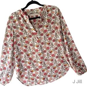 Colorful floral tunic top with an open neck and long sleeves from J Jill
