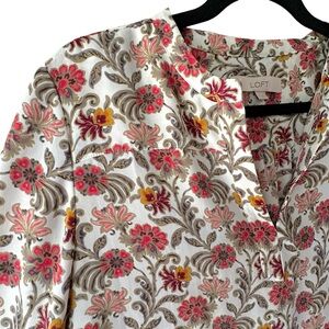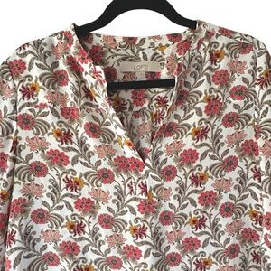 LOFT | NWOT LONG SLEEVE FLORAL TUNIC TOP BLOUSE SPLIT NECK | SIZE: SMALL
