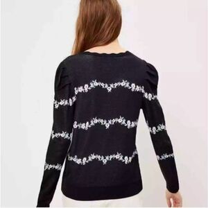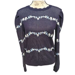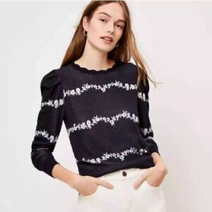 LOFT NWOT Long Sleeve Puff Navy Floral Sweater Small