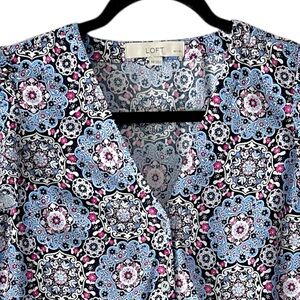 LOFT | NWOT MEDALLION PRINT RUFFLE FLOUNCE BUTTON FRONT COTTON DRESS | XSP