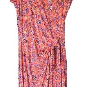 LOFT | NWOT | ORANGE PAISLEY MIDI SIDE TIE DRESS SHORT SLEEVE | EXTRA LARGE