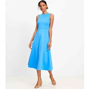 NWOT LOFT Ponte Seamed Midi Dress in bold cobalt blue — the ultimate mix of sleek and sophisticated. Made from a structured-yet-stretchy ponte knit that smooths and flatters every curve. Features a tailored seamed waist, sleeveless silhouette, and an elegant midi length perfect for work, weddings, or any occasion that calls for polished confidence. Effortlessly chic and easy to style with heels or a cropped jacket.