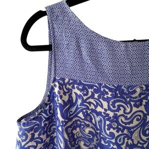 LOFT | NWOT SLEEVELESS PAISLEY TOP BLUE & GRAY EXPOSED BACK ZIPPER | MEDIUM