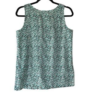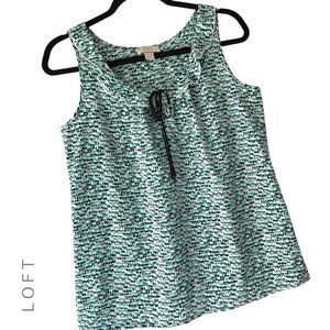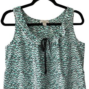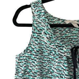 LOFT | NWOT SLEEVELESS RUFFLE TIE NECK TOP GREEN & BLACK GRAPHIC PRINT | SMALL