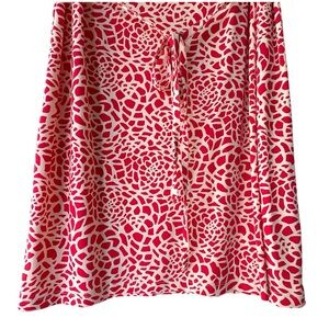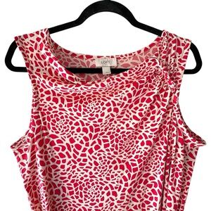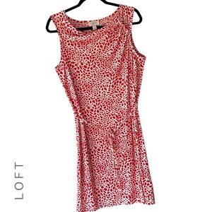 LOFT NWOT SLEEVELESS TIE FRONT DRESS RED & WHITE MOSAIC PRINT | MEDIUM