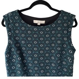 LOFT | NWOT TEXTURED KNIT GREEN & BLACK RETRO PRINT DRESS FIT & FLARE | SIZE: 6