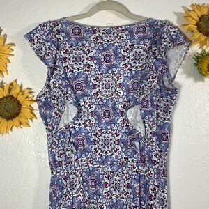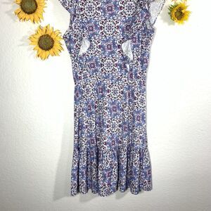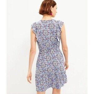 LOFT NWT $69 Pattern Ruffle Short Sleeve Skater Dress Size Small Womens