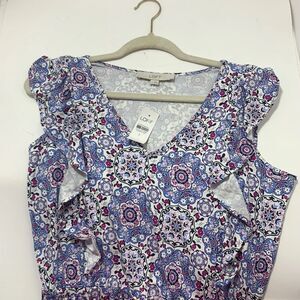 LOFT NWT $69 Pattern Ruffle Short Sleeve Skater Dress Size Small Womens. New with tags!