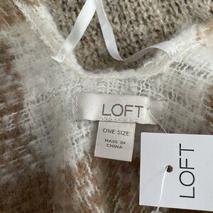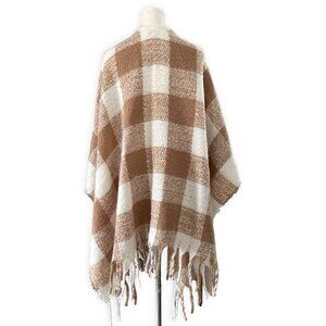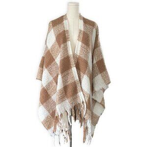 LOFT NWT Buffalo Check Wrap Womens OS Beige White Plaid Fringe Hem Western Plush