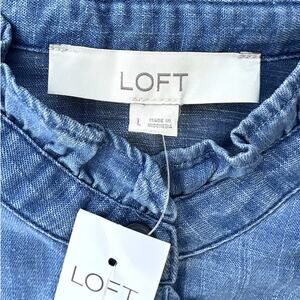 LOFT NWT Chambray Ruffle Flounce Swing Dress Blue Size Large $90 Retail