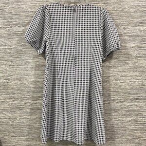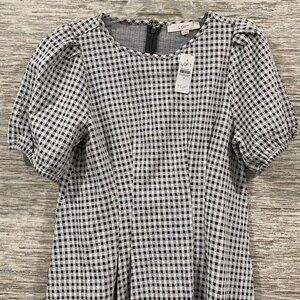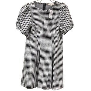 LOFT NWT Gingham Preppy Puff-Sleeve A-Line Dress 6 — Black/White Textured Knit
