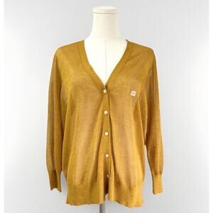 LOFT NWT Metallic Viscose Cardigan Sweater Women L Retro Orange Gold Lightweight
