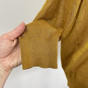 LOFT NWT Metallic Cardigan Sweater Women L Retro Orange Gold Lightweight Sheer