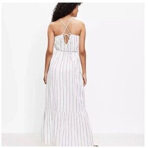 LOFT NWT Shimmer Stripe Tie Back Maxi Dress - Whisper White - Size S Fit M