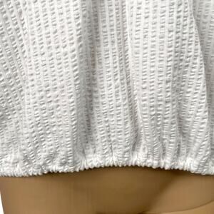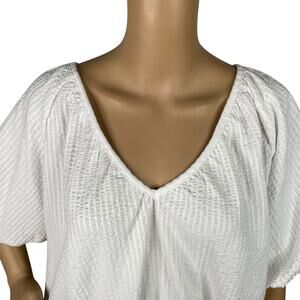 LOFT NWT White V-neck Crinkle Seersucker Peasant Top SZ L