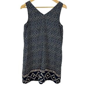 LOFT Navy Blue Batik Sleeveless Linen Blend Casual Shift Mini Dress Med Petite