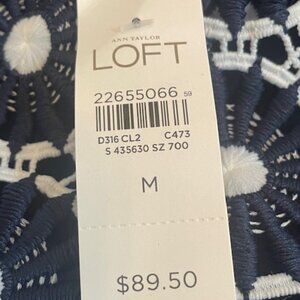 Brand new, never worn LOFT Navy Blue Circle Lace Off the Shoulder Shift Dress, Size Medium.