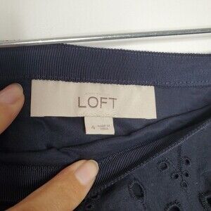 LOFT Navy Blue Eyelet Cotton Mini Skirt Size 4
