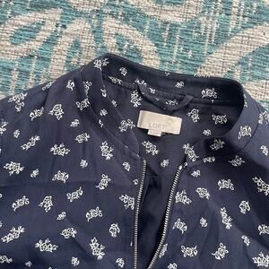 LOFT Navy Blue Floral Print Zip-Up Bomber Jacket - Size S