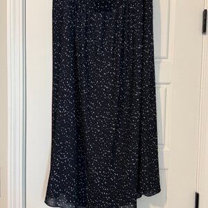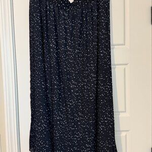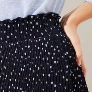 LOFT Navy Blue Polka Dot Pleated Midi Skirt, XL
