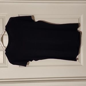 Gently used, Loft Navy Blue Short Sleeve Shirt with White Beaded Neckline, Size Medium