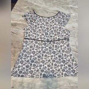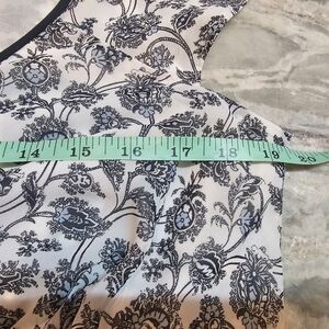 LOFT blouse, floral print blouse, size 14 top, navy and white top, cap sleeve blouse, faux wrap top, ann taylor loft shirt, career blouse, sheer overlay top, business casual top