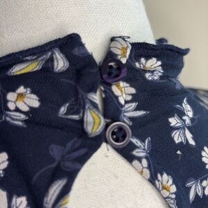 LOFT Navy Floral Sleeveless Rayon Blouse with High Neckline. Medium Petite