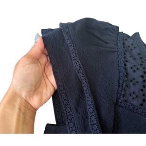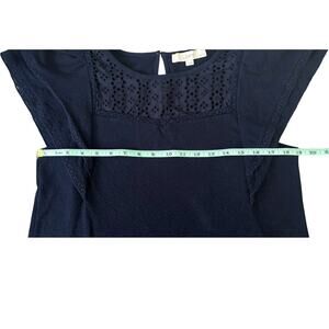 LOFT Navy Flutter-Sleeve Blouse Womens Size Petite L