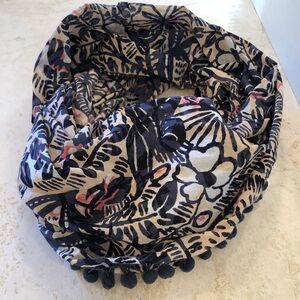 LOFT Navy Multi-Color Pom Pom Infinity Scarf