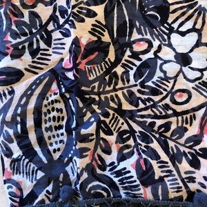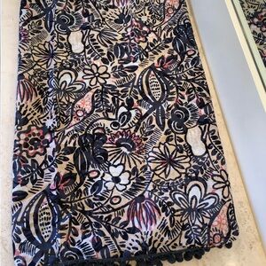 Beautiful LOFT Navy/Peach/White Pom-pom trimmed scarf! Excellent pre-owned condition. 100% Cotton.