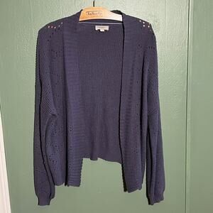 LOFT Navy Open Front Ribbed Cardigan Sweater Size Large