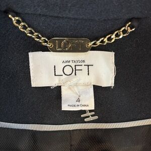 Stay stylish and warm with this classic LOFT peacoat in size 4. Designed with a button-up front, adjustable belt, and a cozy hood, this jacket is both fashionable and functional. Perfect for layering during chilly seasons, it features practical pockets for added convenience.