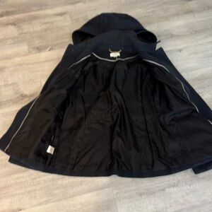 LOFT Navy Peacoat hooded belted jacket button down Sz 4 with pockets