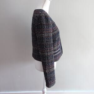 LOFT Navy Red Gray Textured Tweed Open Front Crop Jacket Size 6