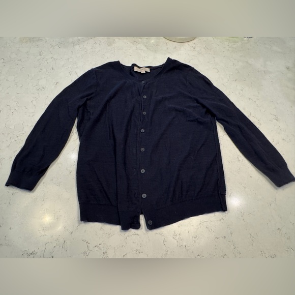 LOFT Navy Ribbed-Neck Sweater