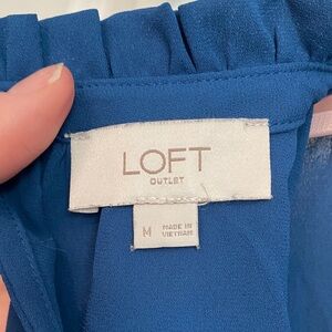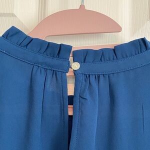 Chic navy blouse with ruffle sleeves. Perfect for versatile styling.