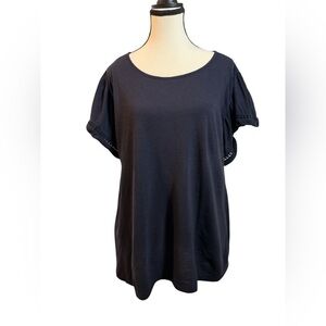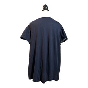 Elegant navy tee with short sleeves. Perfect for everyday wear. Soft fabric for comfort. Cute embroidery detail edge of sleeve. 100% cotton.