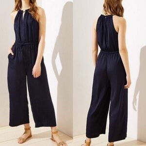 LOFT Navy Silky Maxi Long Wide Leg Romper Jumpsuit M