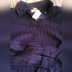Stylish navy shirt from LOFT. Softened fabric for comfort, Small.