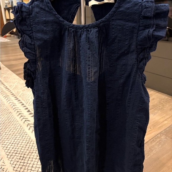 LOFT Navy Textured Ruffle Blouse