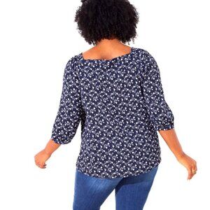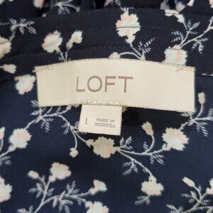 LOFT Navy Vine Print Square Neck Blouse Size L
