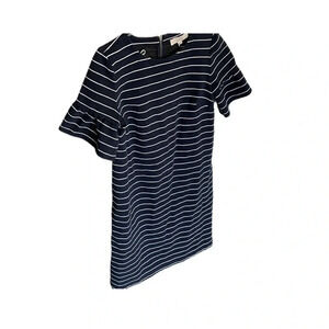 LOFT Navy White Striped Ruffle Sleeve Knee Length Dress Women’s Medium