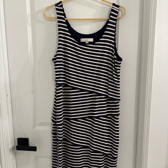 LOFT Navy and White Asymmetrical Striped Dress