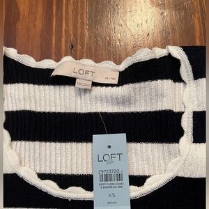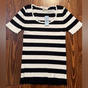 LOFT Navy and White Striped Scallop Short Sleeve Top NWT Petite