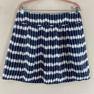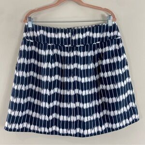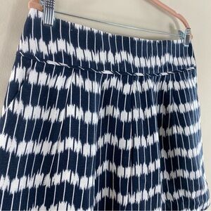 LOFT Navy and White Zigzag Unlined Linen Rayon Blend Mini Skirt Sz 12
