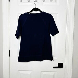 LOFT Navy Blue Heavy Weight Top Beaded Wave Sun Short Sleeve Shirt Size Small