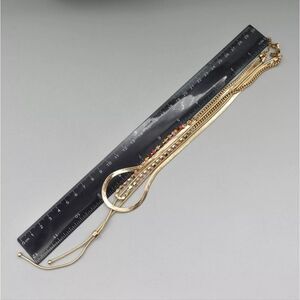 LOFT Necklace Multicolor Rhinestones Gold Tone Herringbone Layered Chains