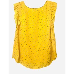 LOFT OUTLET CAP SLV RND NECK TUNIC BLOUSE, WOMENS, XL, YELLOW W/SMALL FLOWERS